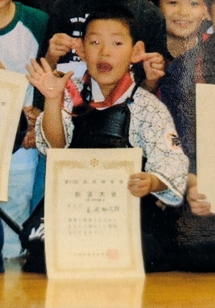 小学校1年生のとき「クレヨンしんちゃん」の影響で剣道を始め、近所の警察署で週2回。夏休みは朝から夜まで剣道に明け暮れていました。